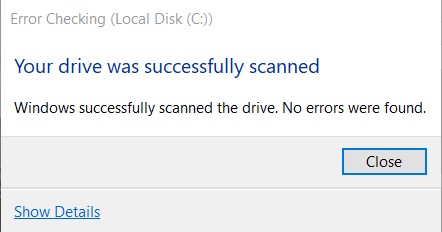 Khi hoàn tất quá trình kiểm tra, cửa sổ thông báo sẽ xuất hiện và báo cáo cho bạn kết quả kiểm tra lỗi.