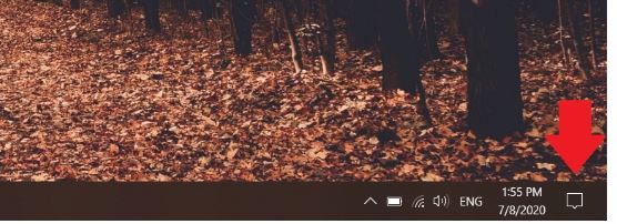 Bước 1: Click chuột vào biểu tượng Action Center ở góc bên phải ngoài cùng trên thanh Taskbar.