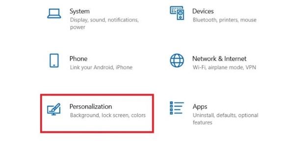 Bước 1: Bấm Windows + I để mở Settings rồi chọn Personalization.