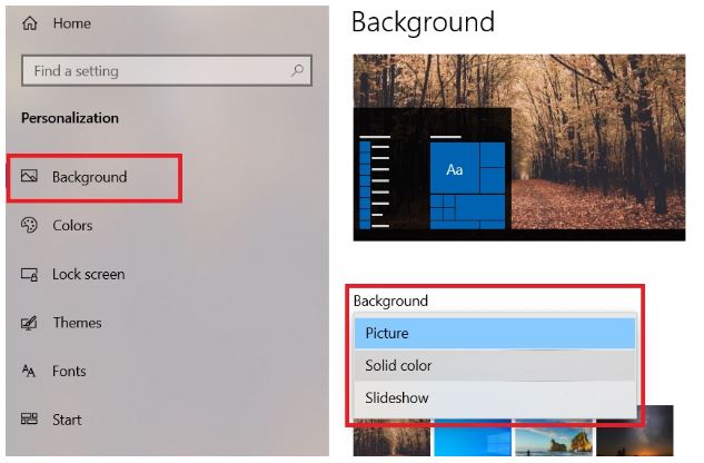 Bước 2: Tại mục Background, bấm vào menu tại dòng Background và chọn Solid Color.