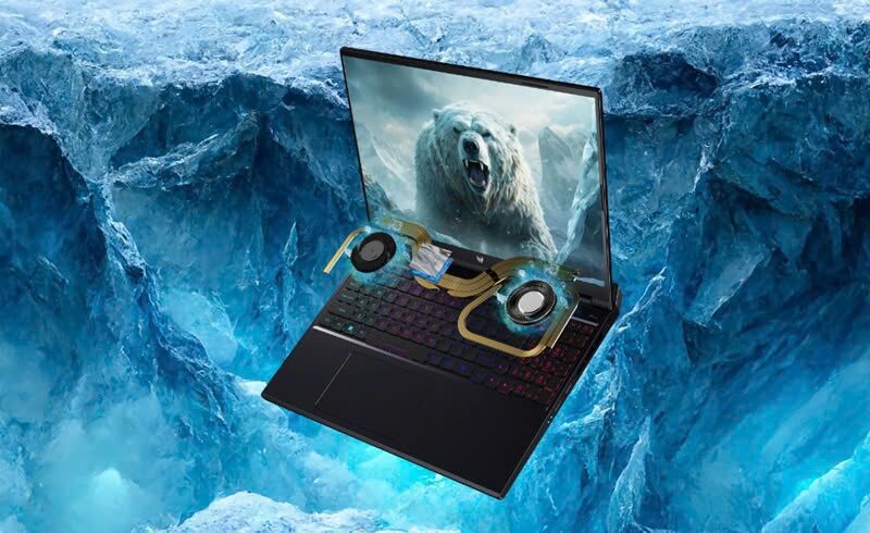 - Predator Helios Neo 16 được trang bị hệ thống tản nhiệt tiên tiến, bao gồm 2 quạt với một quạt AeroBlade 3D thế hệ thứ năm. Quạt này mang đến khả năng làm mát hiệu quả, giảm thiểu nhiệt độ trong quá trình sử dụng máy ở công suất cao mà còn không tạo ra tiến ồn quá khó chịu khi chơi game.
