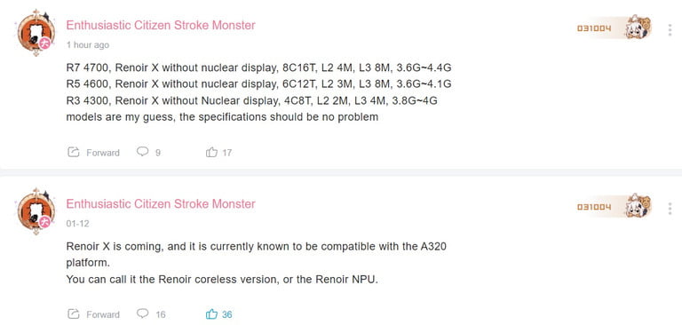 - Thông tin rò rỉ mới nhất đến từ Công dân nhiệt tình, người đã đăng thông số kỹ thuật của dòng sản phẩm AMD mới trên Bilibili, một trang web truyền thông xã hội của Trung Quốc. Theo thông tin đó, có vẻ như Renoir-X sẽ tương thích với nền tảng A320 và các bo mạch chủ cấp thấp khác, điều này sẽ khiến hầu hết người dùng dễ tiếp cận.