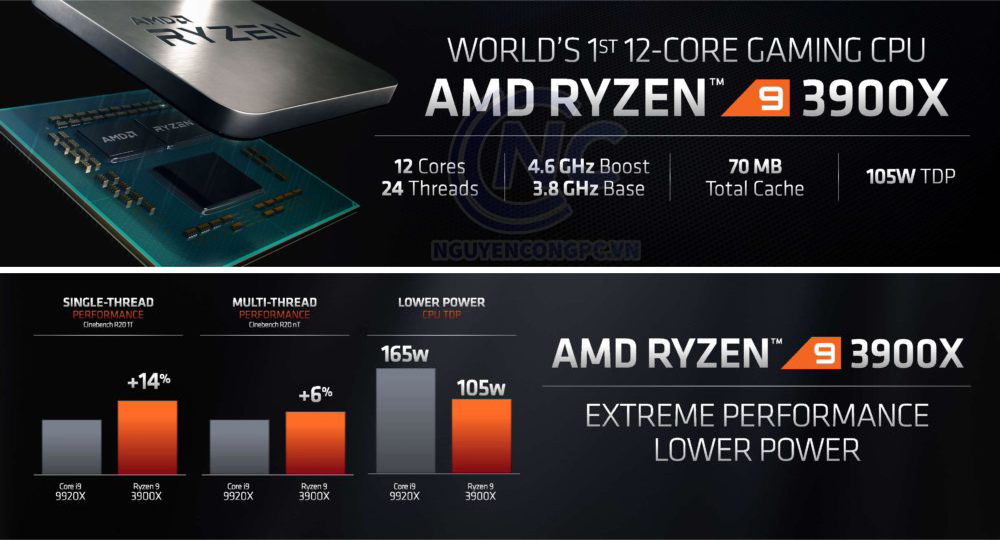 AMD vừa mới giảm giá thành CPU Ryzen 9 3900X 12 nhân 24 luồng còn 410USD (khoảng 9.600.000VNĐ), còn ở Việt Nam thì hiện tại nó vẫn có giá tham khảo là 12.390.000VNĐ. Với mức giá này thì 3900X sẽ đe dọa vị thế của Intel Core i9-10900K lẫn i7-10700K . Hiện tại i9-10900K đang có mức giá lên đến 510USD (khoảng 12.000.000VNĐ) trong khi giá đề xuất chỉ là 489USD (khoảng 11.500.000VNĐ), còn i7-10700K thì có giá tầm 410USD (khoảng 9.600.000VNĐ), i9-10900KF tầm 480USD (khoảng 11.300.000VNĐ), và i7-10700KF thì tầm 380USD (khoảng 8.900.000VNĐ).