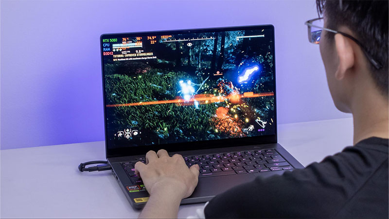 Sức mạnh của Zephyrus G14 2025 đến từ AMD Ryzen AI 9 HX 370 cùng GPU NVIDIA GeForce RTX 5080. Bộ đôi này đảm bảo khả năng xử lý mượt mà mọi tựa game AAA, đồng thời tối ưu hóa tốc độ khi làm việc đa nhiệm hoặc sáng tạo nội dung.