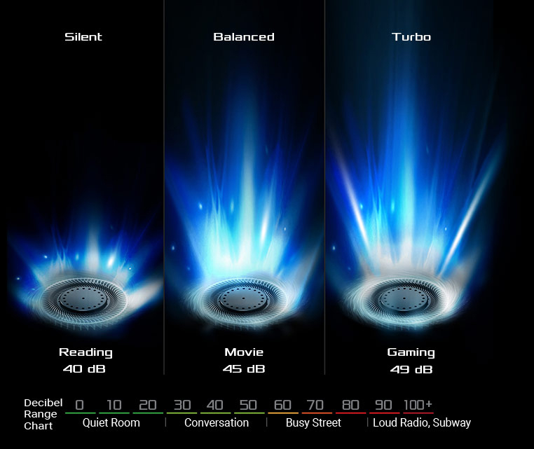 TĂNG TỐC VỚI HYPERFAN KHI CẦN THIẾTBằng cách nhấn FN + F5 hoặc thông qua phím nóng Armoury Crate là bạn đã có thể truy cập và sử dụng HyperFan để chọn giữa năm cài đặt hệ thống khác nhau. Trong đó có một chế độ mặc định của Windows với các cài đặt tiêu chuẩn và một chế độ Thủ công cho phép người dùng điều chỉnh riêng tốc độ của các quạt chuyên dụng cho GPU và CPU để đạt được hiệu năng ép xung lý tưởng. Ba chế độ còn lại giúp cân bằng giữa hiệu năng hệ thống và độ ồn: Chế độ Turbo mang đến tốc độ quạt nhanh nhất để khai thác triệt để sức mạnh của Zephyrus S khi chơi game cường độ cao. Chế độ Yên lặng giới hạn tốc độ quạt và mức tiêu thụ điện năng để phục vụ cho các tác vụ nhẹ hơn. Chế độ Cân bằng mang đến công suất quạt ổn định ở mức độ ồn trung bình. |