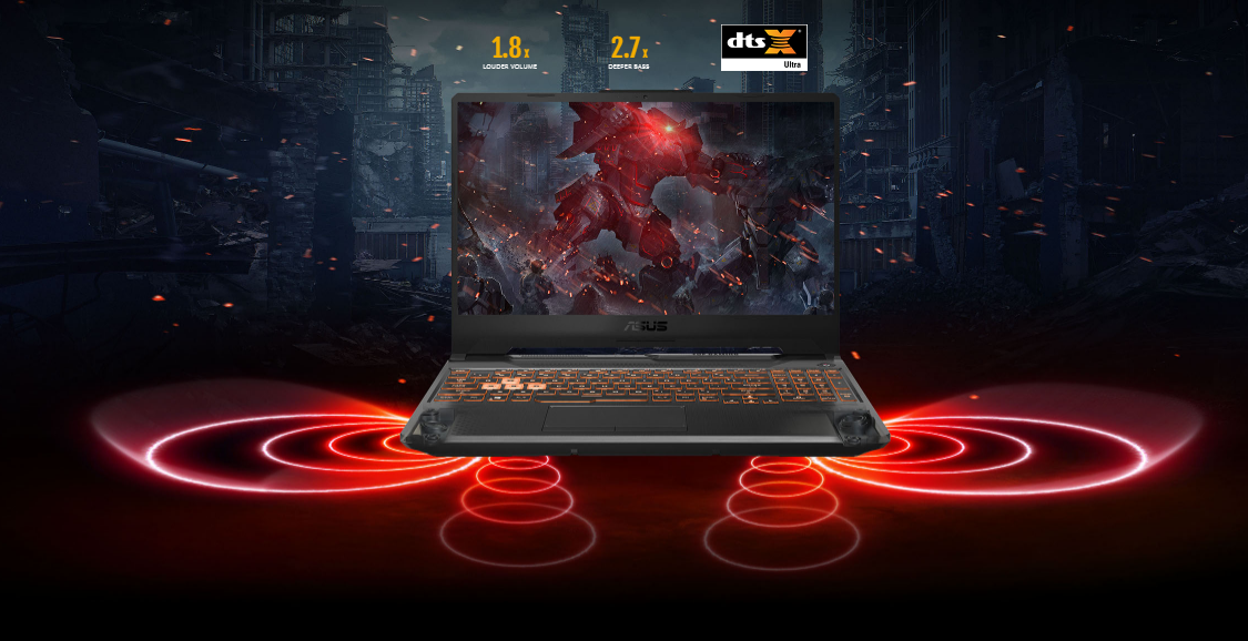 Asus mang đến công nghệ âm thanh DTS:X® Ultra Audio™ mang đến âm thanh sống động chân thật, to khoẻ của Treble và Bass vừa đủ giúp bạn tận hưởng các ca khúc sôi động hay các đoạn film gay cấn trong không gian giải trí sau khoảng thời gian làm cả ngày.