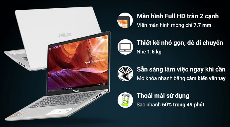 Asus Vivobook D409DA - EK095T là dòng sản phẩm được giới thiệu và ra mắt thị trường vào quý 2.2020. Sản phẩm mang thiết kế hoàn toàn mới về laptop văn phòng theo tiêu chí mỏng, gọn, nhẹ thuận tiện cho việc di chuyển cơ động nhiều trong ngày.