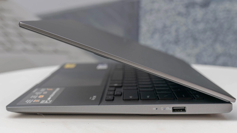 Máy trang bị hai cổng USB-C, hai cổng USB-A, HDMI và cổng 3,5 mm, không có cổng LAN hay khe cắm thẻ nhớ.