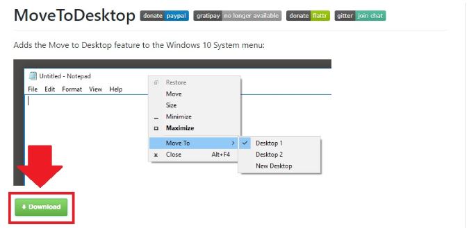 Bước 1: Đầu tiên, bạn cần tải một ứng dụng miễn phí có tên là MoveToDesktop.