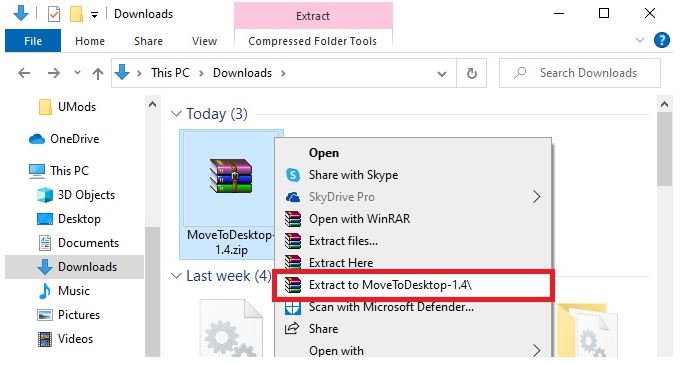 Bước 2: Sau khi tải về, bạn giải nén file bằng cách click chuột phải rồi chọn Extract to MoveToDesktop-1.4.zip.