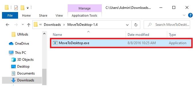 Bước 3: Sau khi giải nén xong, bạn mở thư mục vừa được giải nén lên rồi mở file MoveToDesktop.exe để chạy ứng dụng.