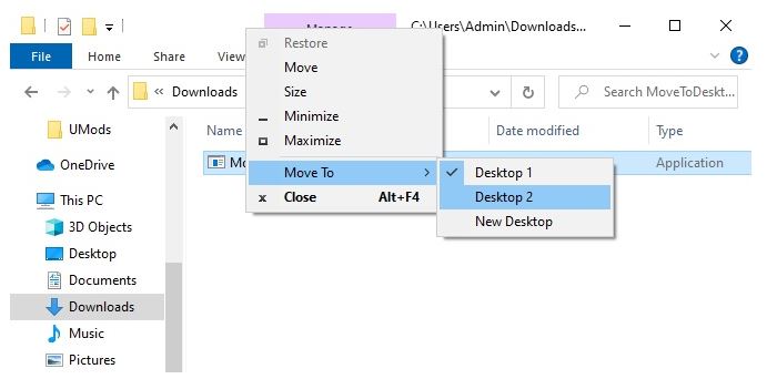Cách 1: Click chuột phải vào thanh title bar của cửa sổ bất kỳ chọn Move to rồi chọn desktop ảo mà bạn muốn chuyển sang.