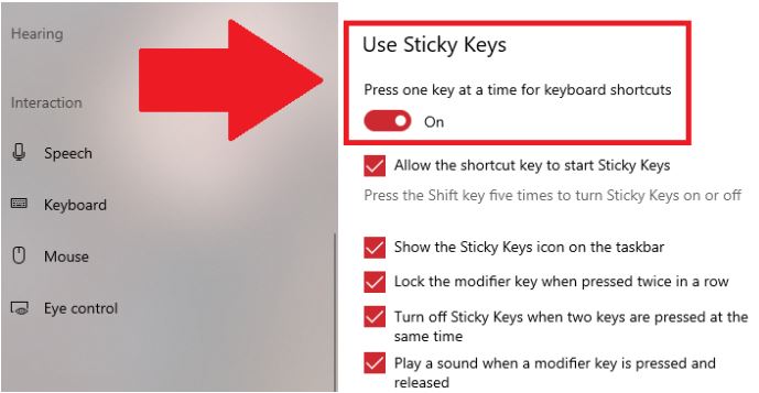 Bước 4: Tại mục Use Sticky Keys, bạn kéo thanh ngang thành ON.
