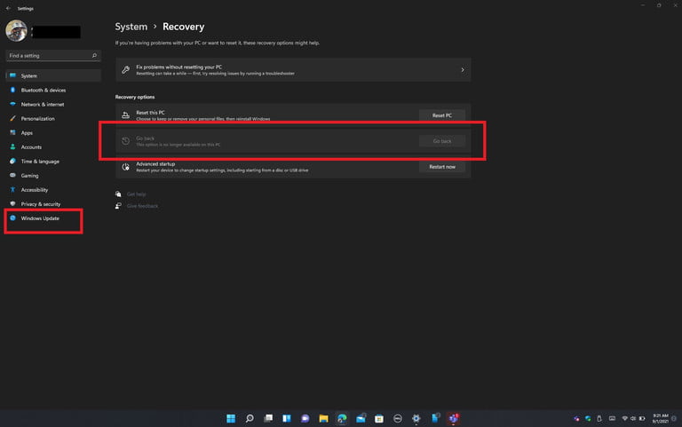 - Cách đơn giản nhất để gỡ cài đặt Windows 11 là quay trở lại Windows 10. Với phương pháp này, bạn sẽ không mất bất kỳ tệp nào của mình, nhưng có một cơ hội. Bạn chỉ có 10 ngày kể từ khi cập nhật lần đầu lên Windows 11 để quay lại Windows 10. Nếu điều này áp dụng cho bạn, hãy làm theo các bước của chúng tôi bên dưới, nếu không, hãy chuyển sang phần tiếp theo.