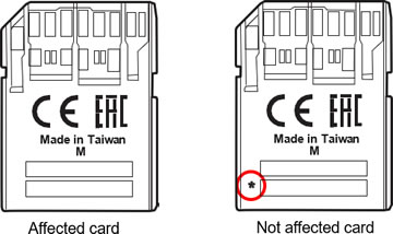 Nếu bạn đang sở hữu thể Sony SD thuộc dòng Tough SF-G, hãy lật nó lên và nhìn vào mặt sau. Nếu thẻ của bạn có biểu tượng ngôi sao ở góc dưới bên trái, nó KHÔNG bị ảnh hưởng.