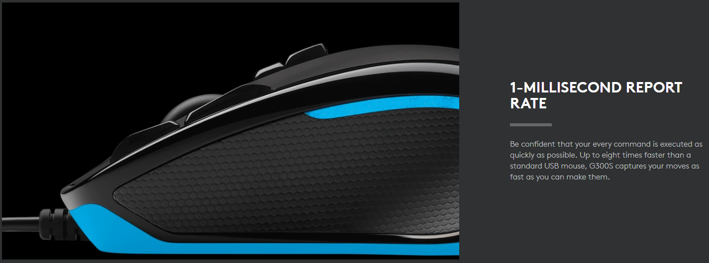 Hãy tự tin rằng mọi lệnh của bạn được thực thi nhanh nhất có thể. Nhanh hơn tới tám lần so với chuột USB tiêu chuẩn, G300S ghi lại các bước di chuyển của bạn nhanh nhất có thể.