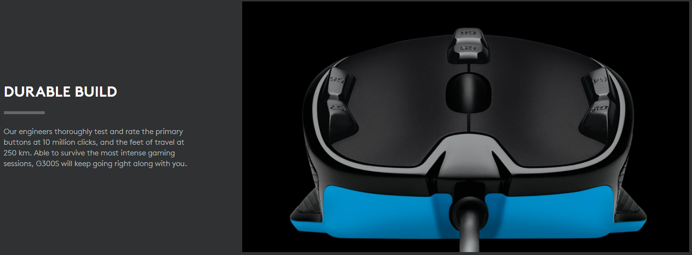 Các kỹ sư của chúng tôi kiểm tra kỹ lưỡng và đánh giá các nút chính ở 10 triệu lần nhấp và quãng đường di chuyển là 250 km. Có thể tồn tại trong những phiên chơi game căng thẳng nhất, G300S sẽ tiếp tục đồng hành cùng bạn.