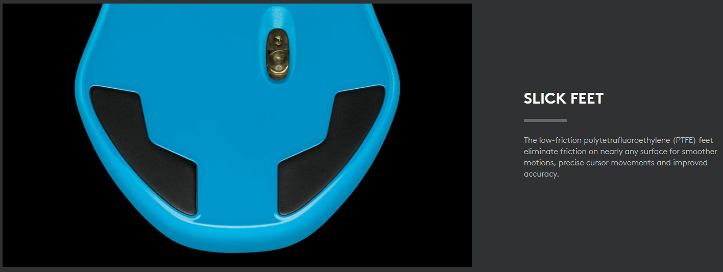 Chân polytetrafluoroethylene (PTFE) ma sát thấp loại bỏ ma sát trên hầu hết mọi bề mặt để chuyển động mượt mà hơn, chuyển động con trỏ chính xác và cải thiện độ chính xác.