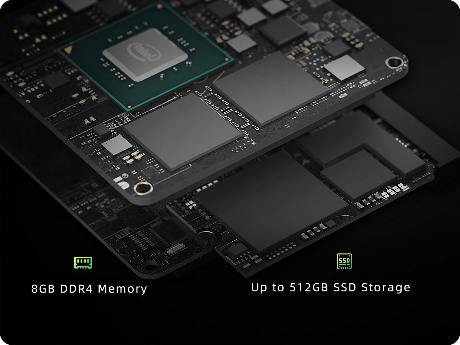 Máy được cài đặt sẵn Windows 10 cho phép người dùng làm việc, giải trí và thực hiện các tác vụ ở độ phân giải 4K. Các linh kiện được đặt trong bộ khung bằng kim loại với TDP 10W.