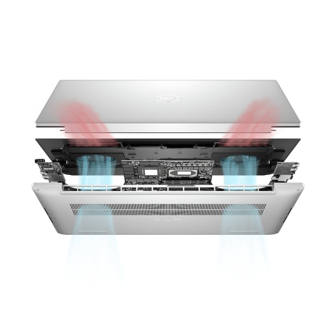 Bên cạnh đó, Dell cũng đã tích hợp một hệ thống làm mát tiên tiến, đây rất có thể là hướng giải quyết cho các vấn đề làm mát của các thế hệ XPS trước đây. Hệ thống làm mát này bao gồm hai yếu tố, yếu tố chính là quạt kép Đối diện (Dual Opposite Outlet fans) của Dell. Theo như hang cho biết, quạt hai cửa đối diện được thiết kế để giúp tăng lưu lượng gió khoảng 30% so với các giải pháp XPS trước đây. Quạt điều khiển luồng không khí làm mát theo cả hai hướng mà Dell tuyên bố sẽ dẫn đến nhiều luồng khí tổng thể hơn và nhiệt độ da được cải thiện.