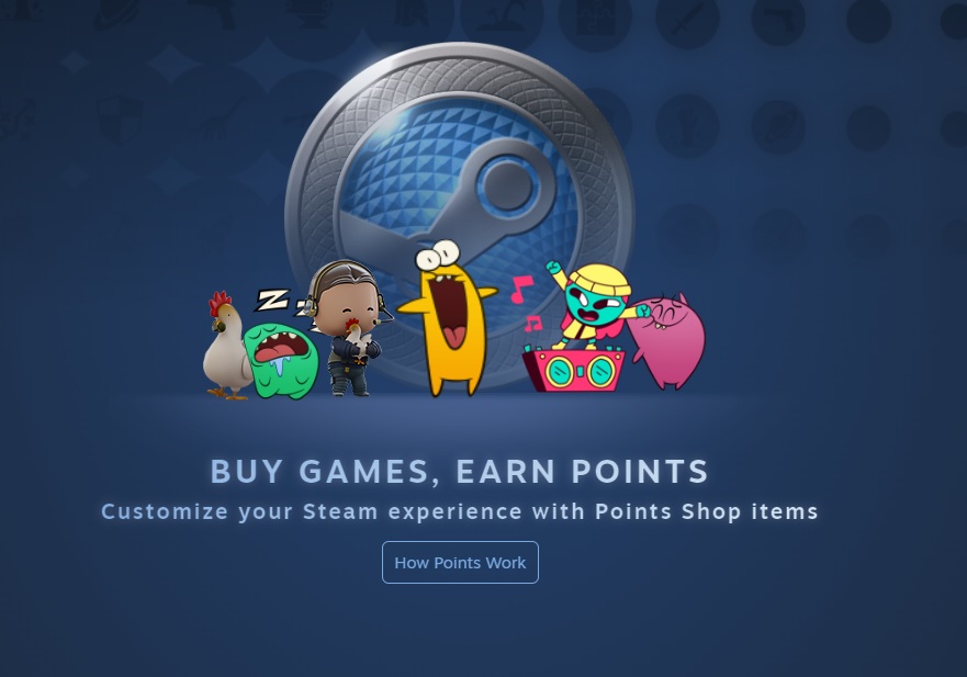 Với mỗi đô la chi tiêu trên Steam (bao gồm cả các trò chơi, cập nhật DLC, phần cứng hoặc ứng dụng khác), người dùng nhận được 100 điểm. Một số vật phẩm bạn có thể mua bằng Steam Points là ảnh avatar động (3.000 điểm), hình nền hồ sơ (2.000 điểm), sticker khi chat (1.000 điểm) và biểu tượng cảm xúc (100 điểm). Bạn cũng có thể sử dụng điểm để mua các mặt hàng đã được mua trước đó thông qua thẻ giao dịch (hệ thống này vẫn tồn tại chứ không bị bỏ đi).