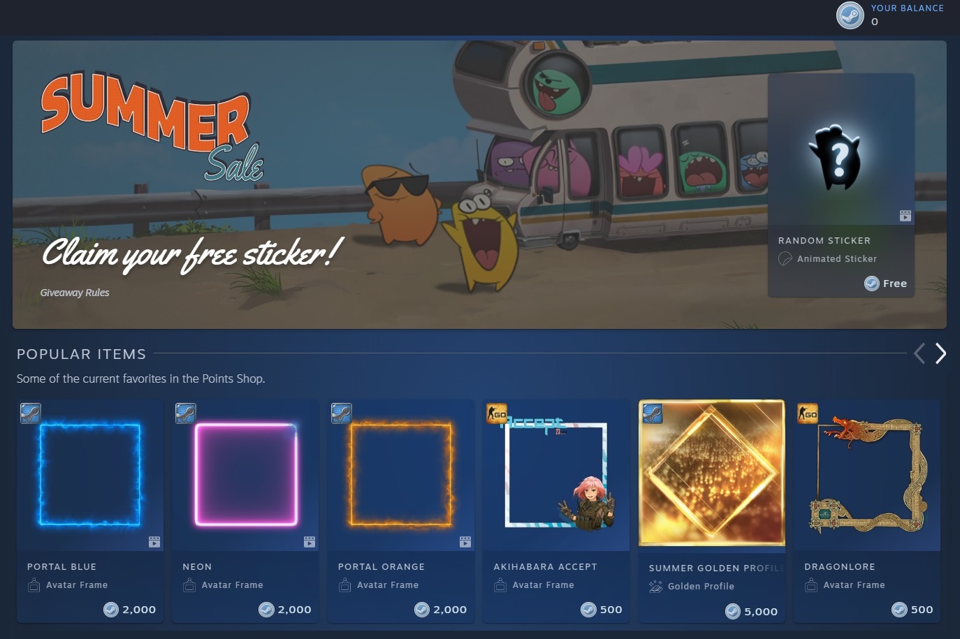 Hệ thống này là một sự bổ sung vĩnh viễn cho nền tảng Steam và sẽ không biến mất khi kết thúc sự kiện. Về cơ bản, bạn sẽ nhận điểm khi chi tiền trong cửa hàng và có thể sử dụng chúng để mua vật phẩm trang trí (cosmetic) cho tài khoản hoặc giải thưởng để tặng cho nội dung cộng đồng, bao gồm cả đánh giá của người dùng.