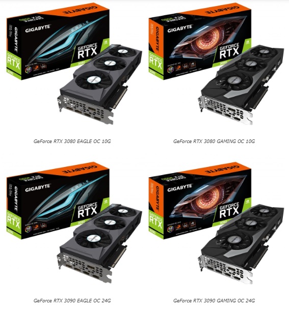 Vừa qua, GIGABYTE đã ra mắt dòng card đồ họa NVIDIA GeForce RTX 30 mới, gồm 4 card đồ họa: Geforce RTX 3090 GAMING OC 24G, Geforce RTX 3090 EAGLE OC 24G, Geforce RTX 3080 GAMING OC 10G, Geforce RTX 3080 EAGLE OC 10G. Cả 4 card đồ họa này đều được phát triển trên kiến trúc NVIDIA Ampere