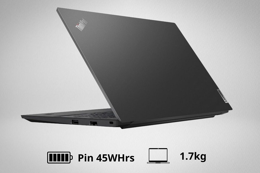 - Laptop lenovo thinkpad e15 có dung lượng pin là 45WHrs. Tương đương thời lượng pin sẽ từ 4-5 tiếng, nhưng nếu bạn dùng để xem phim chất lượng FHD, chơi game nhẹ hoặc dùng để thiết kế thì thời gian sẽ giảm.