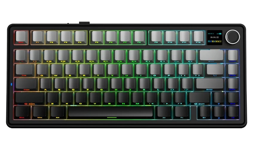 - Một điểm nâng cấp đáng chú ý trên Aula F75 Max chính là màn hình mini LED hiển thị thông tin tích hợp ngay trên bàn phím. Màn hình này cho phép người dùng theo dõi các thông tin quan trọng như trạng thái kết nối (Bluetooth/2.4G/Type-C), mức pin, hiệu ứng đèn RGB đang sử dụng hoặc các chế độ hoạt động khác. Ngoài ra, màn hình còn hỗ trợ hiển thị hình ảnh động, góp phần tăng thêm tính cá nhân hóa và thẩm mỹ cho góc làm việc hoặc chơi game.