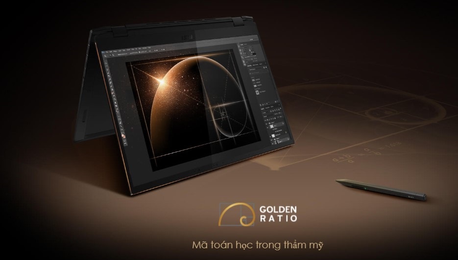 - Thiết kế doanh nhân sang trọng, màn hình cảm ứng xoay 350 độ với độ phân giải 2K, dãy màu chuẩn 100% sRGB.