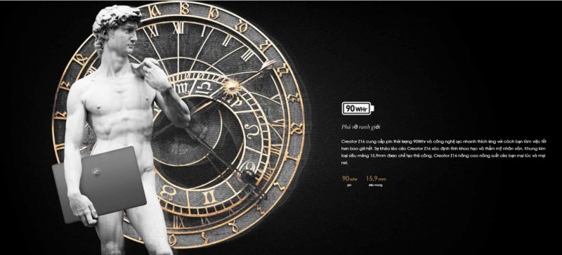 Creator Z17 được trang bị hiệu suất vượt trội, ngoài ra đây cũng là chiếc laptop đầu tiên trên thế giới sử dụng bút cảm ứng, và chiếc laptop này cũng được thiết kế theo tính toán "tỷ lệ vàng" được kết hợp và hài hòa giữa sự hiện đại xen lẫn sự cổ điển huyền bí.