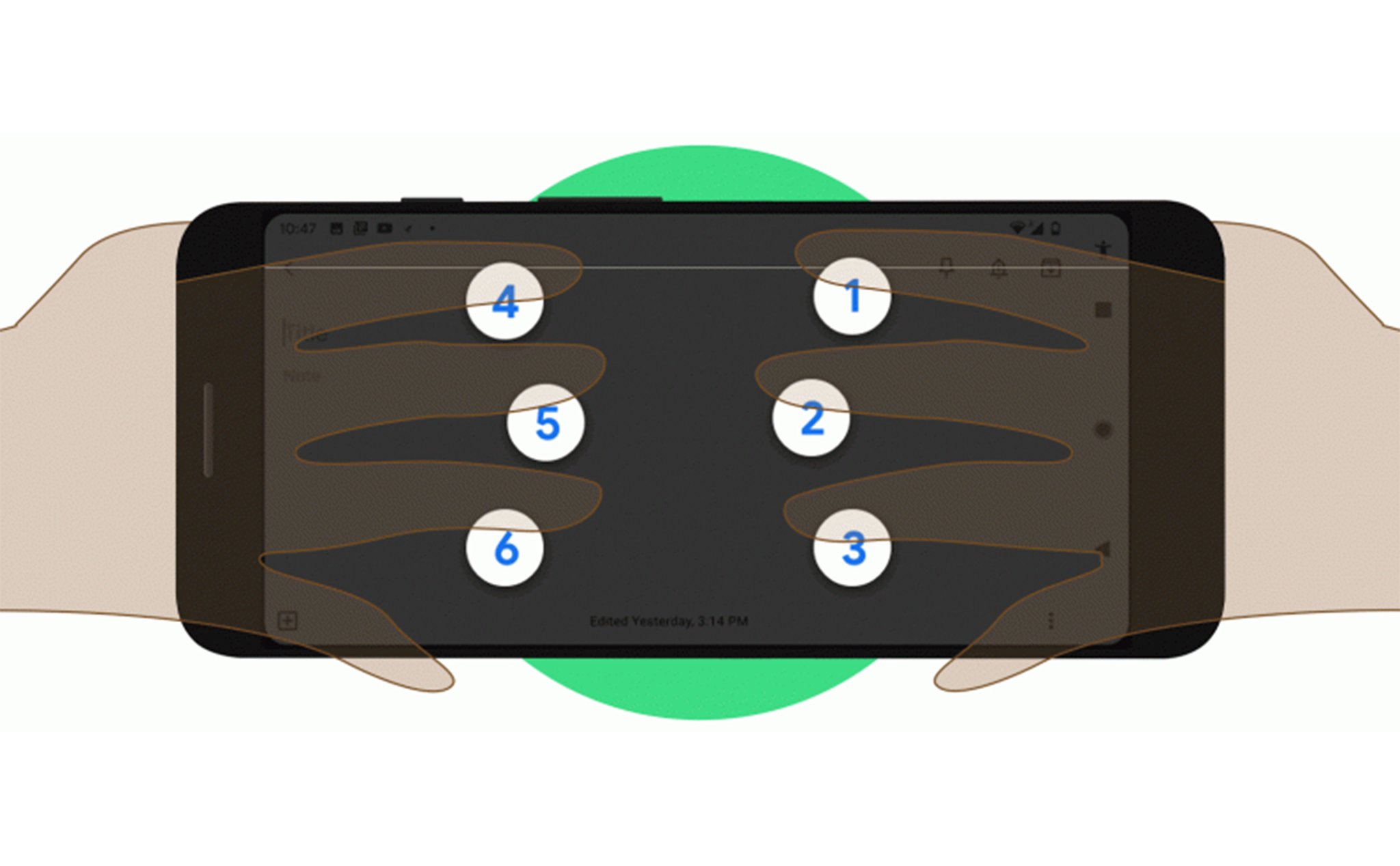 Bàn phím chữ nổi sẽ hỗ trợ trên thiết bị chạy Android 5 trở lên và dựa trên một ứng dụng tên là Google Accessibility Suite cài đặt trên Play Store. Layout bàn phím nổi sẽ có 6 nút theo số, bấm như sau: