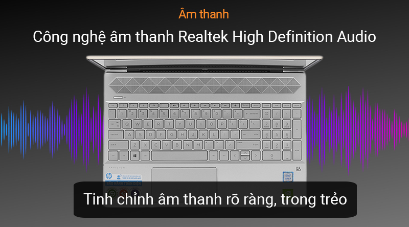 Laptop có âm thanh được tinh chỉnh bởi công nghệ Realtek High Definition giúp âm thanh to rõ, chi tiết, để bạn có được trải nghiệm nghe nhạc, xem phim với âm thanh tuyệt hảo.