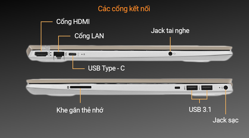 Laptop cho khả năng kết nối toàn diện với các khe cắm phổ biến hiện nay như USB Type-C truyền dữ liệu nhanh chóng, HDMI kết nối tiện lợi với tivi, máy chiếu...