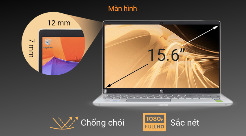 Màn hình viền mỏng 15,6 inch Full HD của chiếc HP Pavilion 15 - cs3011TU sẽ đem đến cho bạn hình ảnh đẹp, độ nét cao, màu sắc trung thực. Bên cạnh đó, bạn có thể sử dụng laptop ở ngoài trời mà vẫn đảm bảo hình ảnh rõ nét nhờ vào công nghệ chống chói.