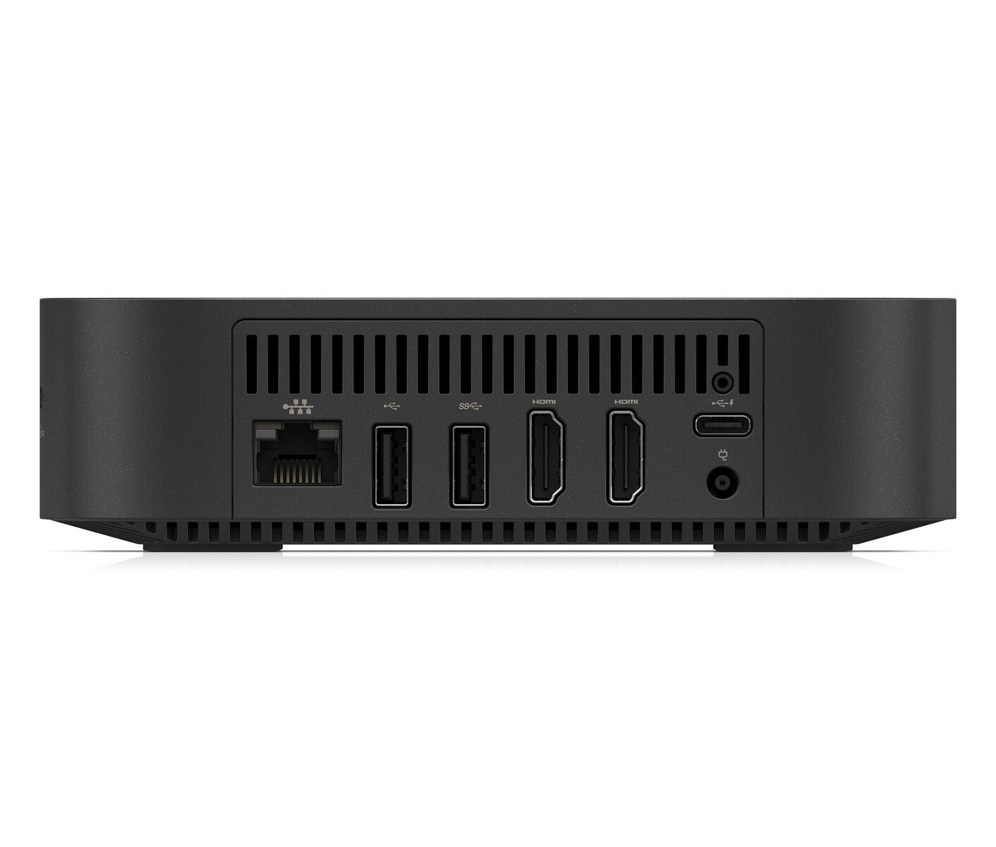 Hệ thống còn cho phép trang bị bộ nhớ RAM DDR4-2666 lên đến 16 GB và ổ SSD PCIe NVMe 128 GB. Các cổng kết nối bao gồm hai cổng USB-A 3.2 Gen 1, đầu đọc thẻ nhớ microSD và giắc cắm kết hợp âm thanh/micrô ở mặt trước, cũng như một cổng USB-A 3.2 Gen 1, một cổng USB-A 2.0, hai HDMI 2.0 ( 4K @ 60 Hz) và giắc cắm RJ-45 ở mặt sau. Các kết nối không dây được xử lý bởi card WiFi Intel AX201 802.11ax băng tần kép cũng như hỗ trợ Bluetooth 5.0.