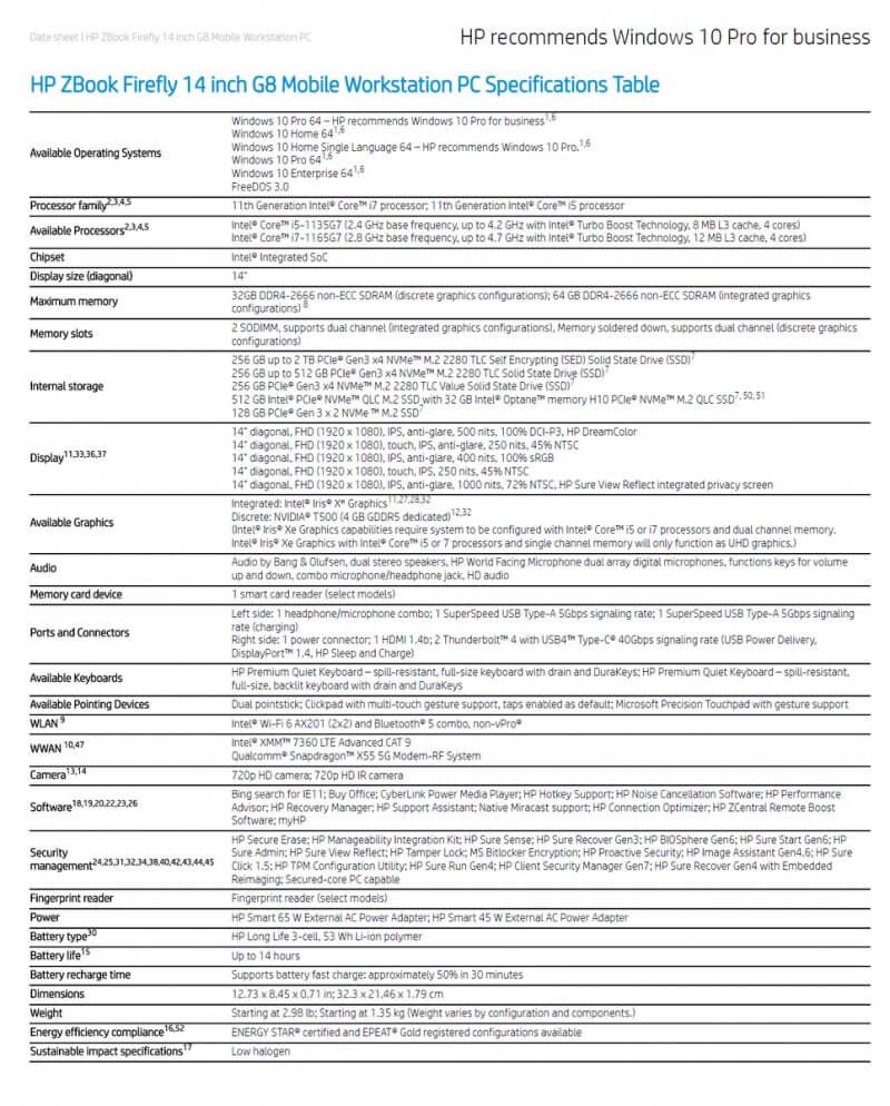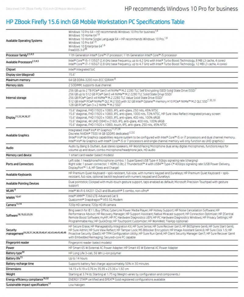 Chỉ trong vòng khoảng sáu tháng, HP đã quyết định làm mới dòng máy trạm di động ZBook Firefly với bộ vi xử lý Intel Tiger Lake, đồ họa NVIDIA Quadro T500 và kết nối 5G. ZBook Firefly có hai biến thể - Firefly 14 G8 và Firefly 15 G8.