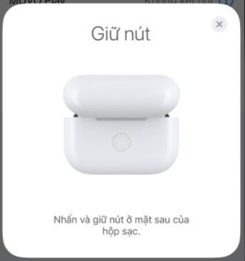 - Bước 3: ấn và giữ núp sau trên hộp AirPods theo hướng dẫn trong màn hình iphone.