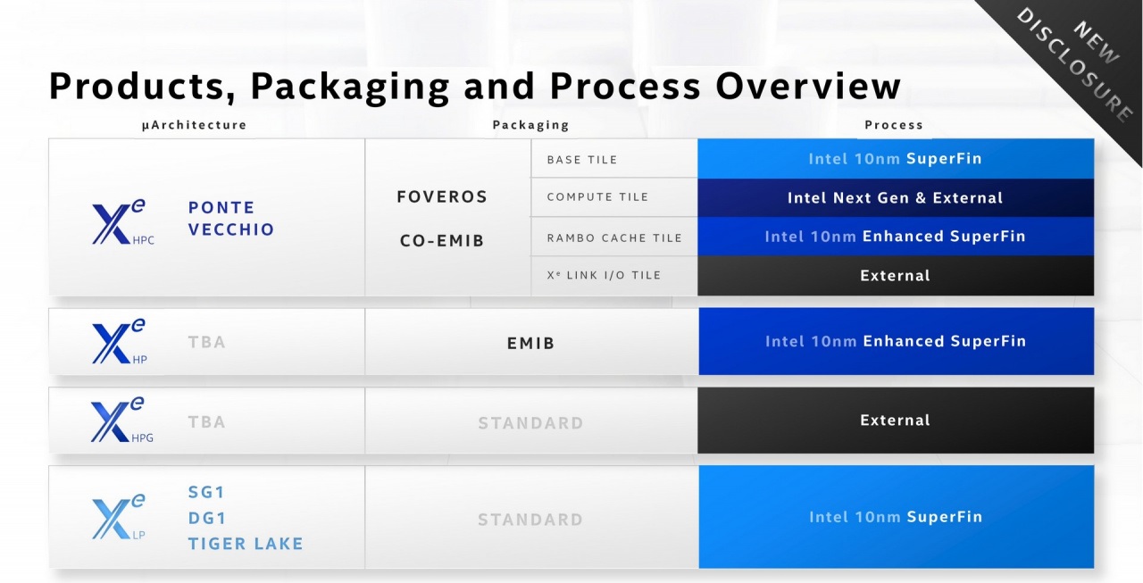 Cuối cùng nhưng không kém phần quan trọng, công ty thông báo rằng vi mạch tập trung vào trò chơi mới sẽ không do chính Intel sản xuất mà thay vào đó, việc sản xuất sẽ được gia công cho một bên ngoài. Nhà sản xuất nào vẫn còn là một bí mật, nhưng do Intel gần đây đã đặt hàng với TSMC của Đài Loan, họ có thể có liên quan đến việc sản xuất Xe-HPG.