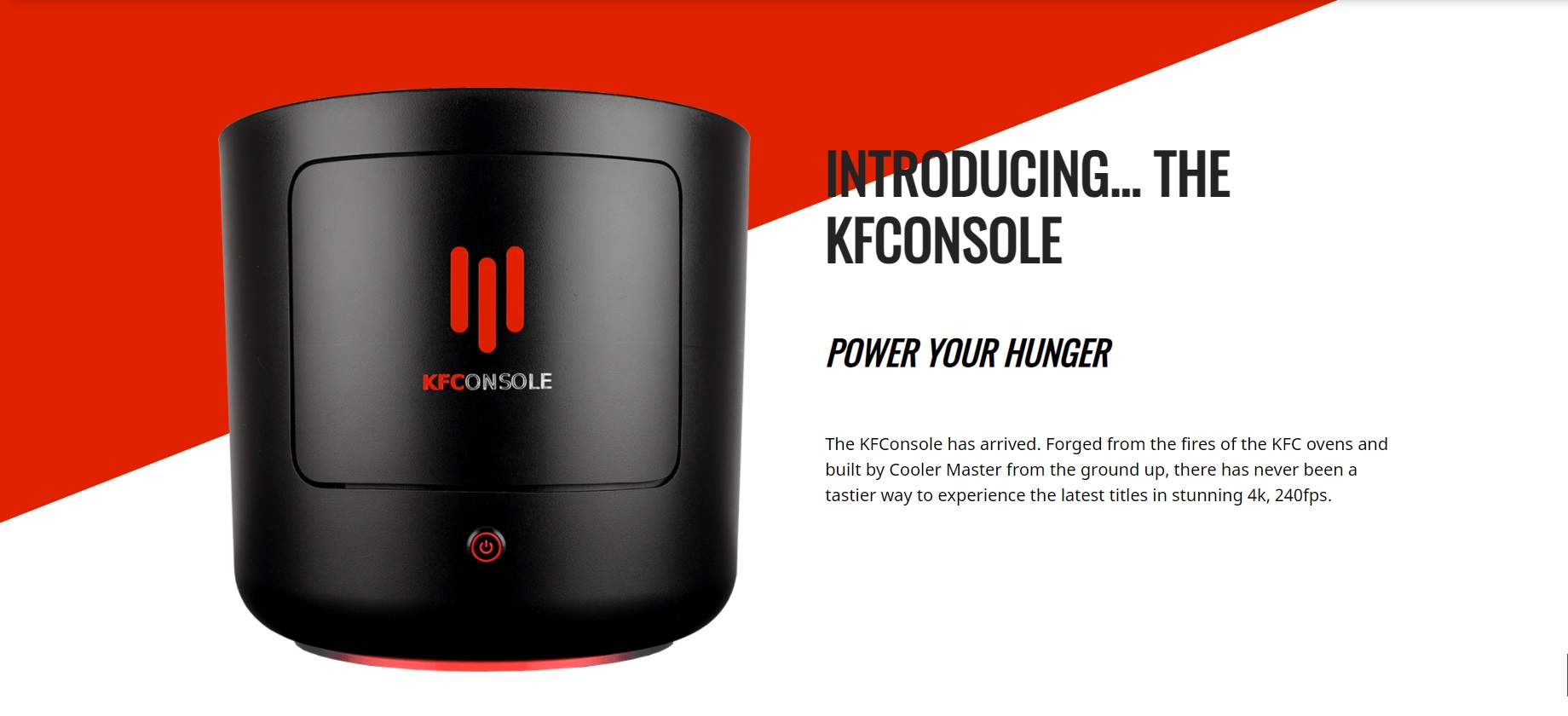KFConsole là kết quả của sự hợp tác với nhà sản xuất phần cứng nổi tiếng Cooler Master, theo như tuyên bố của KFC cho biết.
