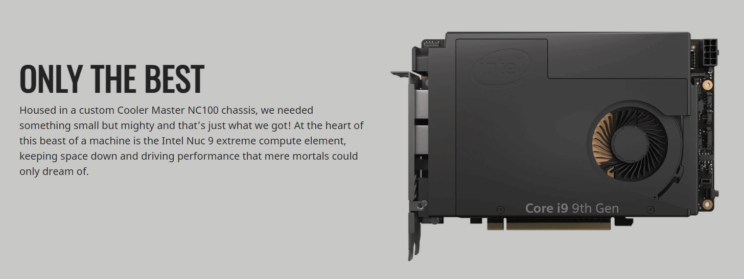 Các thông số kỹ thuật đáng chú ý khác bao gồm hệ thống Intel Nuc 9 Extreme Compute Element (sử dụng vi xử lý Intel Core i9 thế hệ thứ chín 9980HK), hai ổ SSD Seagate® BarraCuda® 1TB cho việc lưu trữ và một khe GPU cho phép thay thế nhanh chóng (nghĩa là bạn có thể nâng cấp KFConsole ngay lập tức giống PC) - trích từ trang web của Cooler Master. Chiếc card gắn sẵn sẽ đến từ ASUS nhưng model cụ thể là gì thì chưa biết.