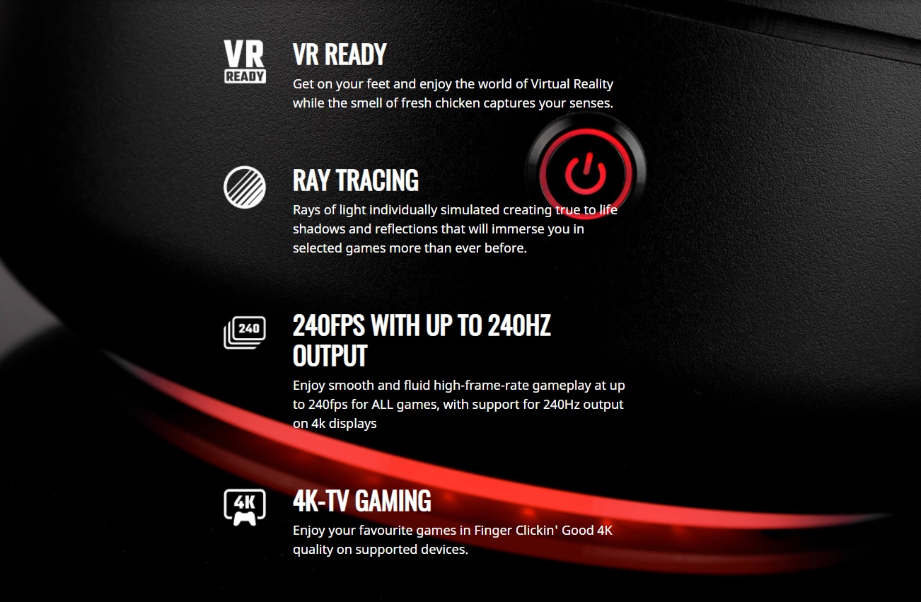 Với sức mạnh phần cứng trên, chiếc máy có thể xử lý các trò chơi thực tế ảo và mang đến gameplay mượt mà ở tốc độ khung hình lên đến 240 khung hình/giây, cùng khả năng tương thích chất lượng hình ảnh hiển thị 4K.