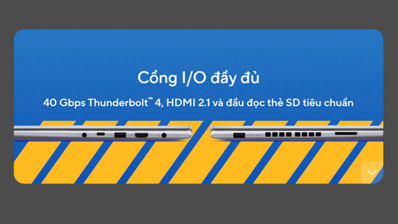 - Đây là lượng cổng kết nối đủ đa dạng cho nhiều mục đích sử dụng khác nhau, từ kết nối ổ cứng rời, bàn phím, máy chiếu,... .