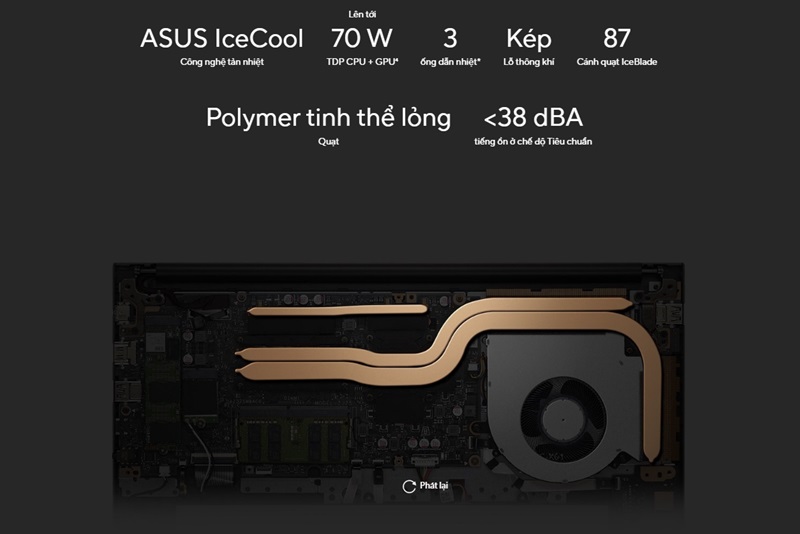- Asus Vivobook K3605 được trang bị công nghệ tản nhiệt tiên tiến ASUS IceCool, thiết kế đặc biệt để duy trì hiệu suất tối ưu và làm mát hiệu quả cho hệ thống. Công nghệ ASUS IceCool không chỉ giúp giảm nhiệt độ của máy tính xách tay mà còn giữ cho các thành phần quan trọng như CPU và GPU hoạt động ở mức hiệu suất tối đa mà không bị ảnh hưởng bởi nhiệt độ quá cao.