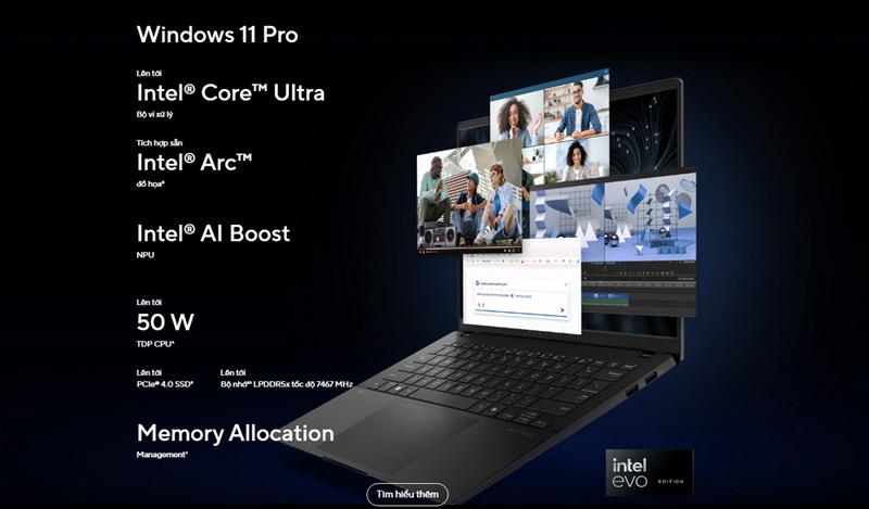 - Thuộc dòng laptop văn phòng mỏng nhẹ, Asus Vivobook S 14 OLED S5406MA PP136W sử dụng vi xử lý CPU Intel Core Ultra 5-125H (14 Cores, 18 Threads). Đây là dòng CPU mà Intel sản xuất riêng cho các mẫu laptop văn phòng, tập trung vào mức hiệu năng cao nhưng tiết kiệm điện năng, hoạt động mát mẻ.