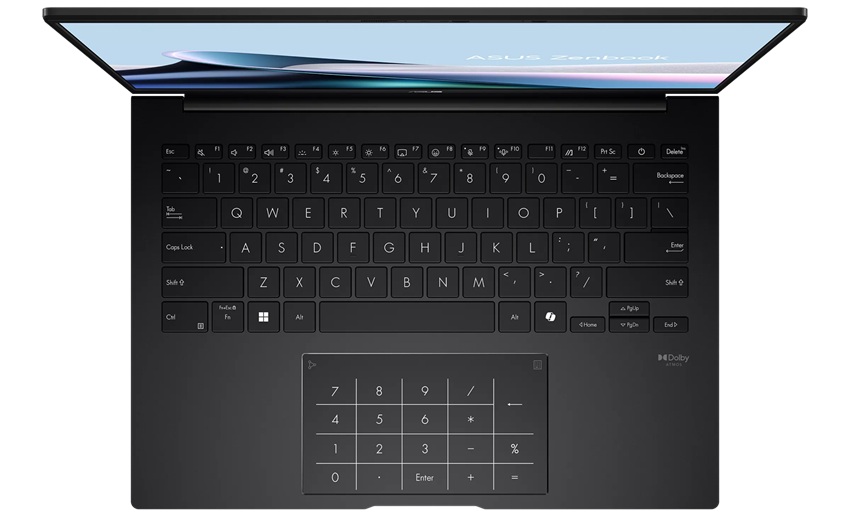 - Phần Touchpad được tráng gương, cho cảm giác di chuột mượt mà, độ nhạy, độ chính xác cao. Đồng thời, phần Touchpad này cũng có thể chuyển thành phần Number pad (tùy phiên bản) thông qua biểu tượng trên góc, giúp nhập số liệu tiện lợi mà không cần dùng đến bàn phím. Phần number pad sẽ không bị nhầm lẫn giữa thao tác chuột vì mọi thao tác đều được Asus tính toán một cách thông minh nhất.
