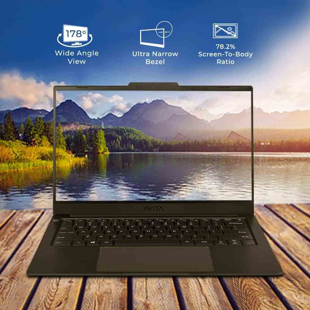 Sử dụng màn hình nhỏ 14.1-inch, nhưng viền mỏng nên màn hình nhìn của máy vẫn đủ để truyền đến những hình ảnh sắc nét, màu sắc sống động. Avita Liber 14 là phiên bản mang đến màn hình với viền siêu mỏng chỉ 3,7mm mỏng hơn 63% so với các phiên bản tiền nhiệm. Vì thế diện tích màn hình hiển thị rộng hơn cùng công nghệ màn hình IPS full HD 16:9 chống lóa cùng góc nhìn siêu rộng đến 178 độ.