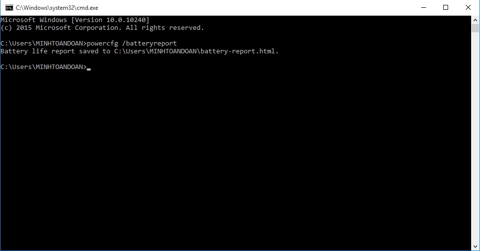 Bước 2: Nhập “powercfg /batteryreport” và nhấn Enter.