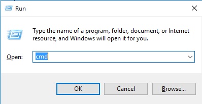 Bước 1: Bạn sử dụng tổ hợp phím Windows + R để truy cập vào cửa sổ Run. Nhập cmd để mở cửa sổ Command Prompt