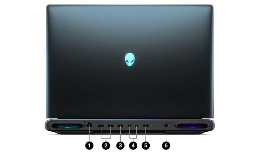 Hệ thống đèn AlienFX: Dải LED RGB chạy dọc thân máy và hốc tản nhiệt lấy cảm hứng từ hiện tượng cực quang (Aurora Borealis), mang lại hiệu ứng thị giác mê hoặc trong đêm.